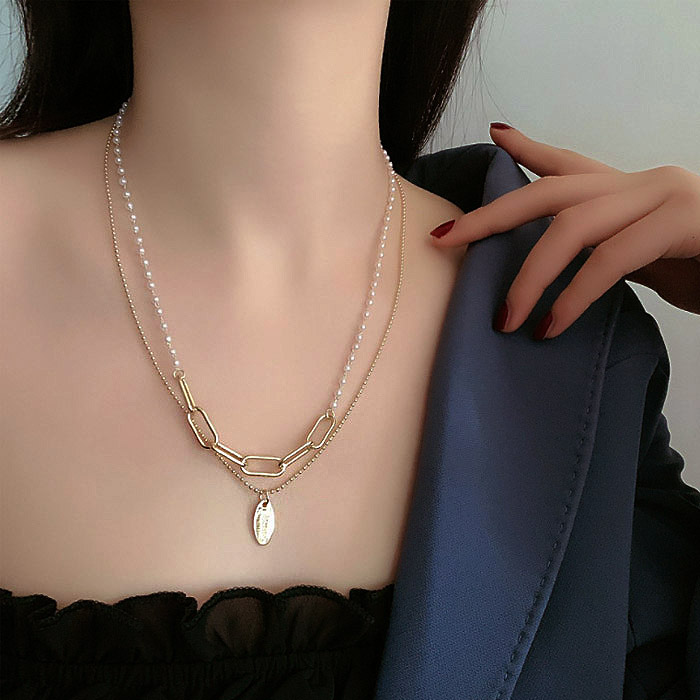 - Two-Layer Design: A chic combination of a rectangle link chain and a classic pearl strand.
