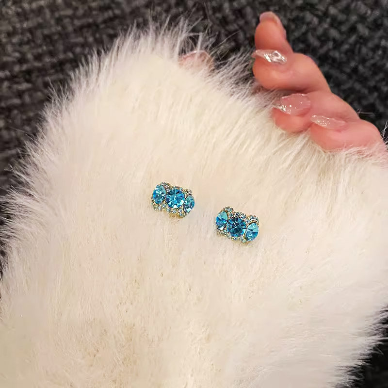 - Wholesale 14k Gold Bling Shining Blue Rhinestone Piercing Stud Earrings (5 pairs)
