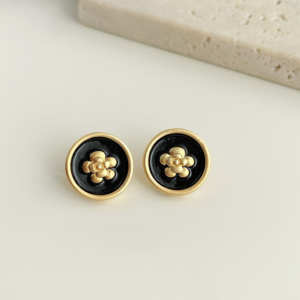 - Product Name: 14k Gold Matte Black Enamel Flower Earrings