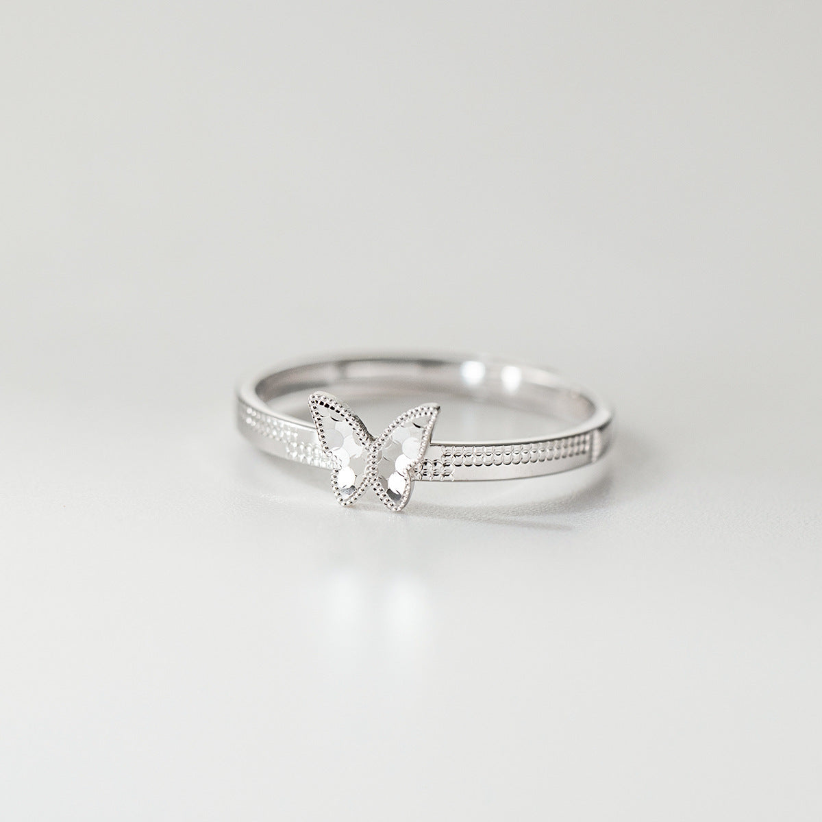 Detailed view of the 925 sterling silver butterfly ring, emphasizing its clean lines and minimalist aesthetic for wholesale jewelry collections.