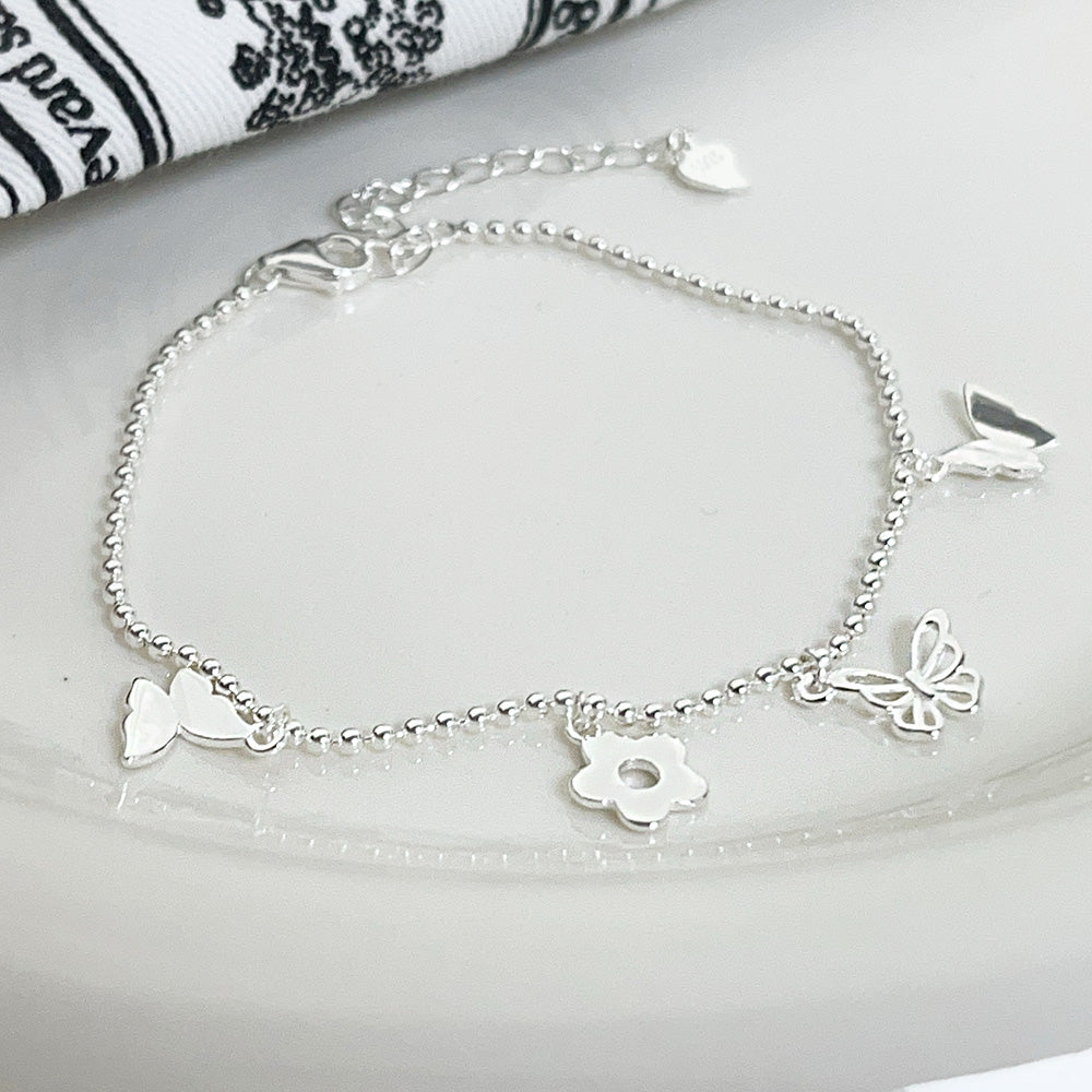 - Product Name: Wholesale 925 Sterling Silver Butterfly and Flower Charms Ball Chain Bracelets (Set of 5)