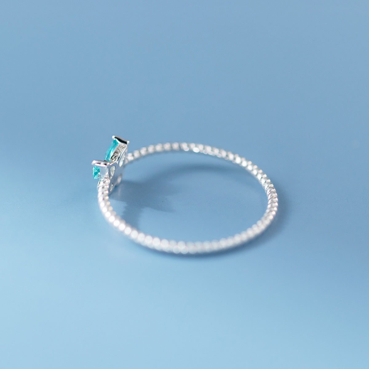 Side profile of the sterling silver ring showcasing the aquamarine gemstone setting.
