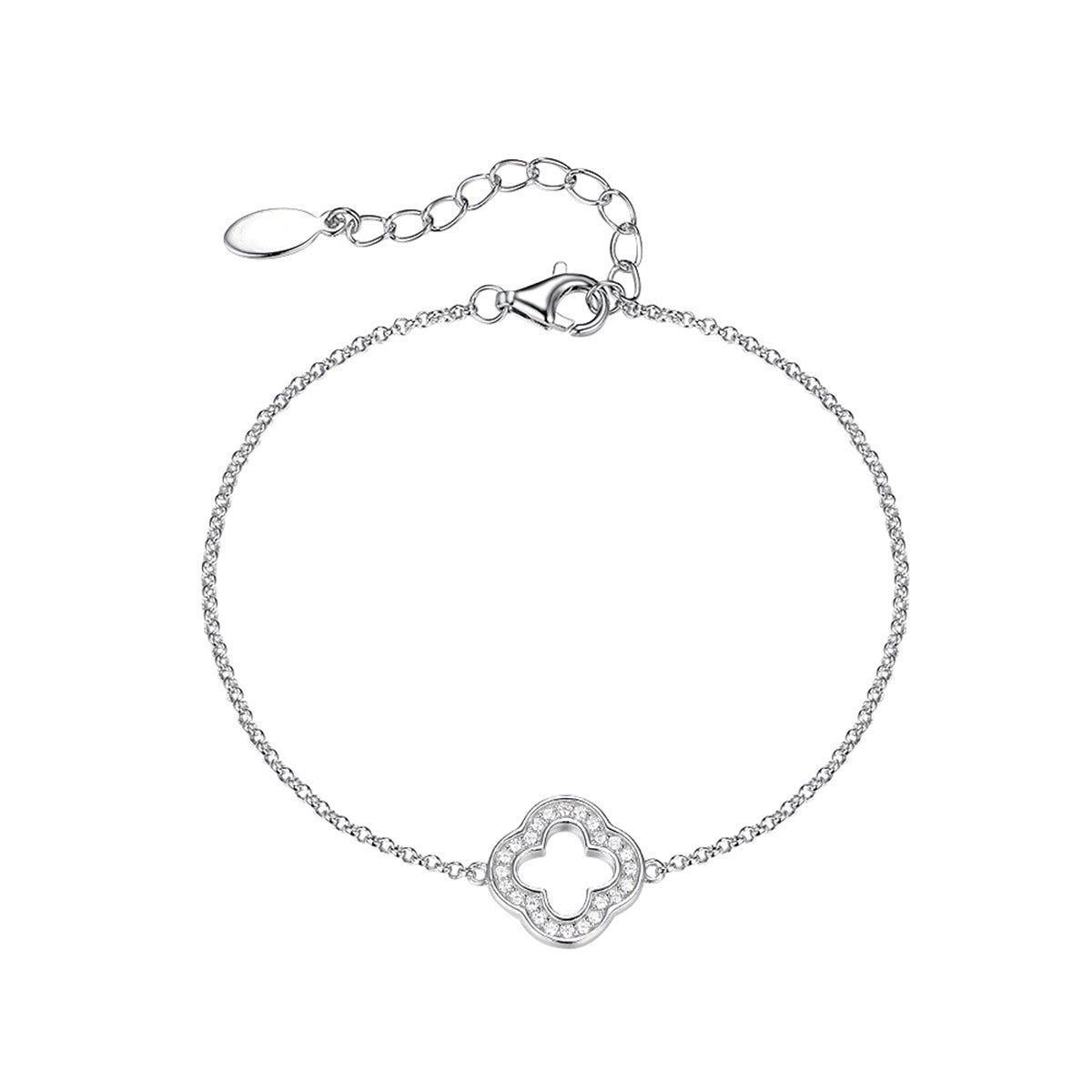 - The elegant 925 sterling silver bracelet featuring a delicate chain and a lucky four-leaf clover charm.