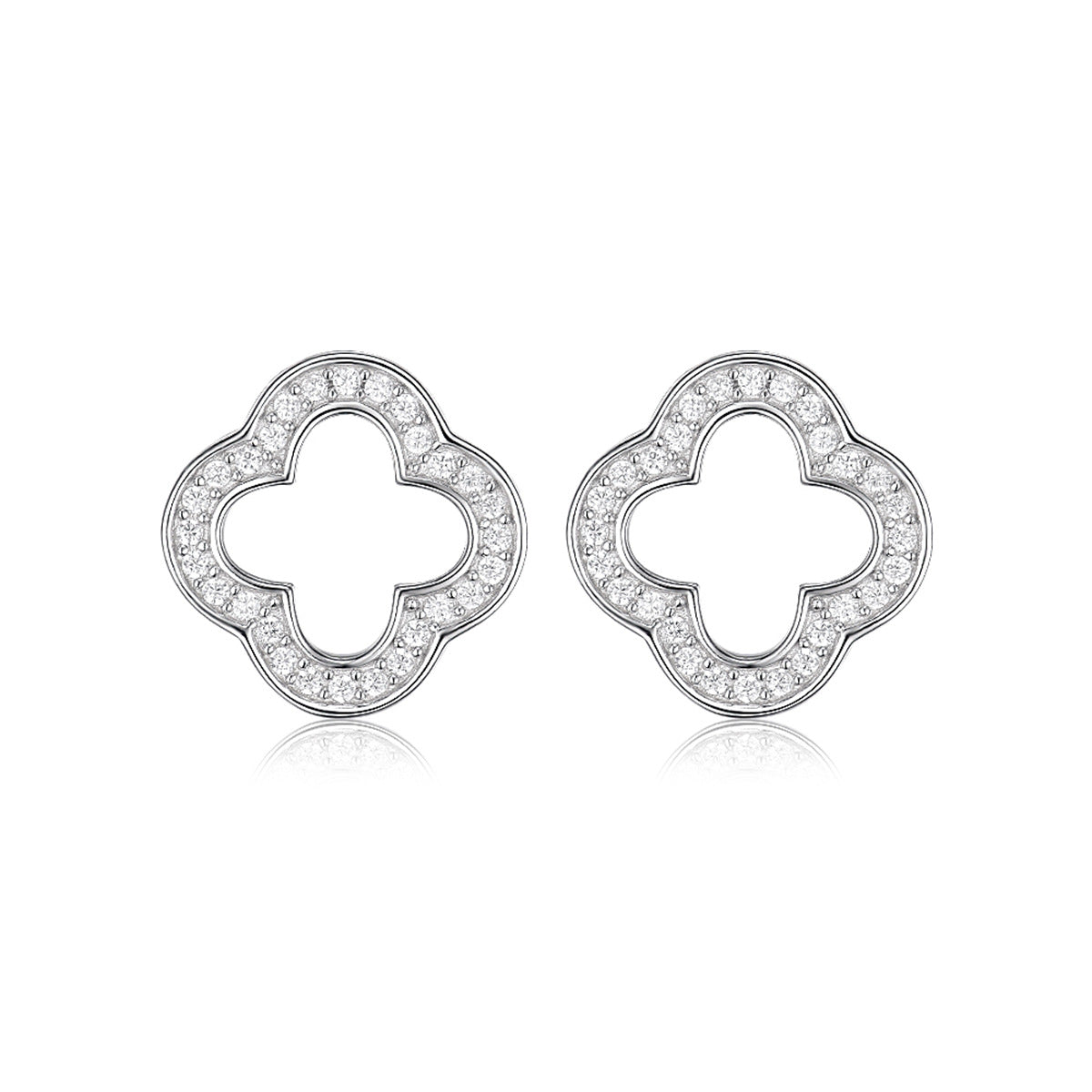 - A pair of lucky four-leaf clover stud earrings in 925 sterling silver, adorned with sparkling cubic zirconia.