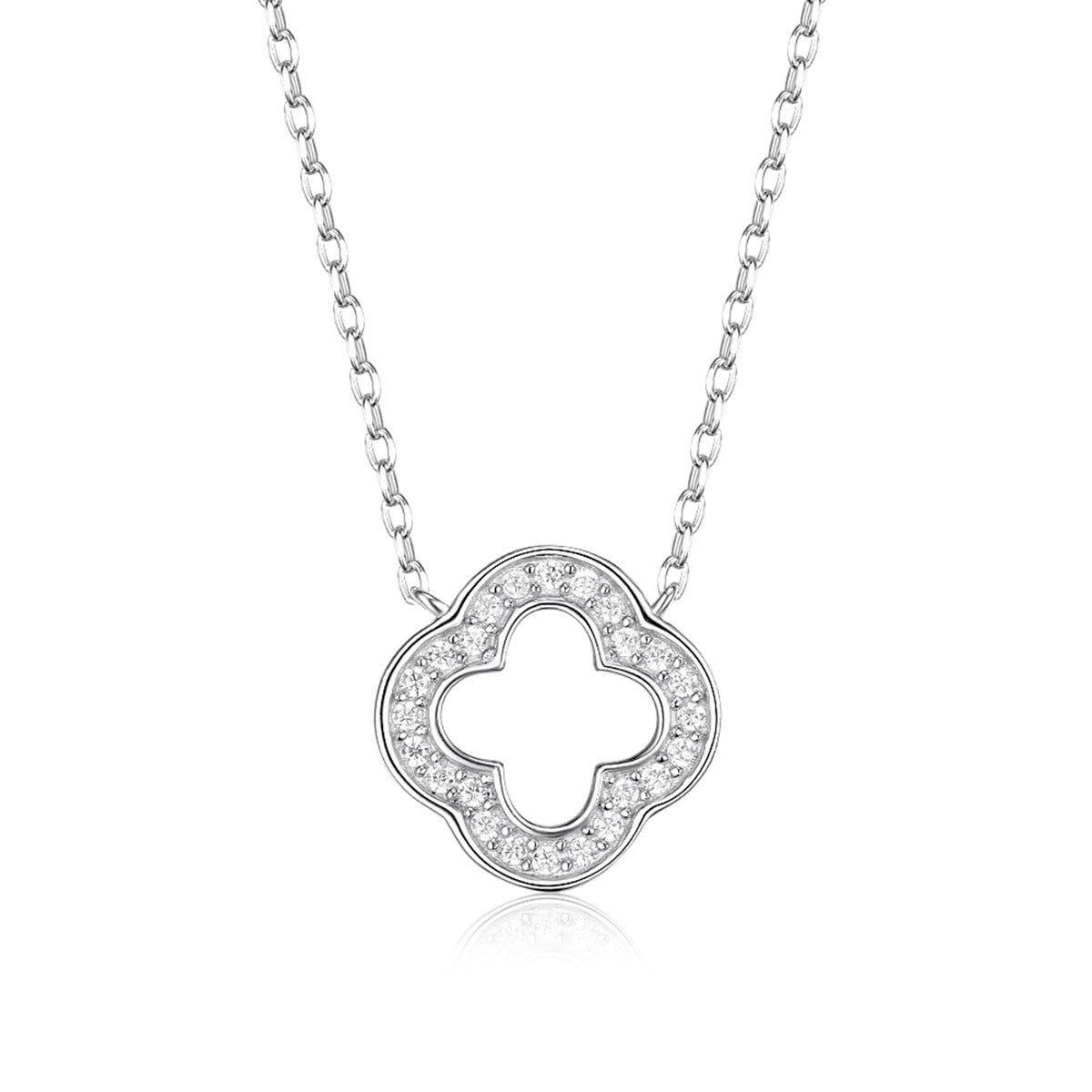 - The stunning 925 sterling silver necklace with a brilliant CZ-studded four-leaf clover pendant.
