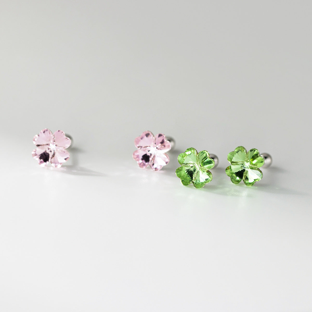 Wholesale 925 Sterling Silver Earrings Colorful Crystal Four Leaf Clover Cartilage Studs for Women (5 Pairs) - Custom Jewelry Manufacturing