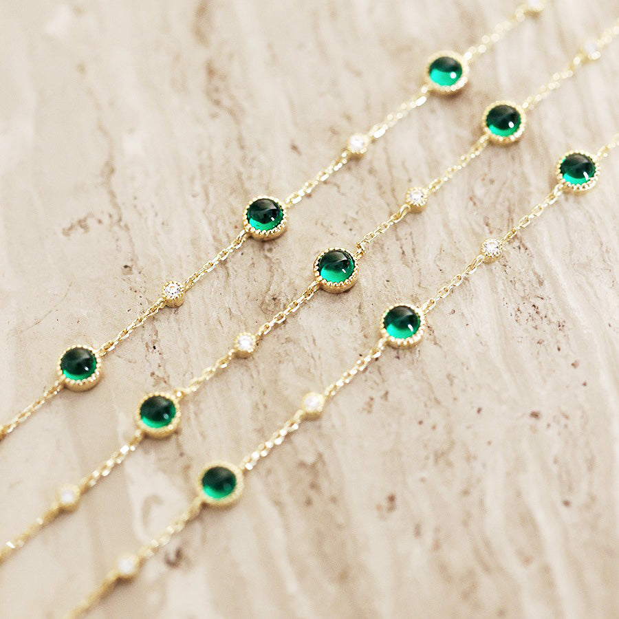 Wholesale 925 Sterling Silver Emerald & Zircon Chain Bracelets (Set of 5) - Custom Jewelry Manufacturing