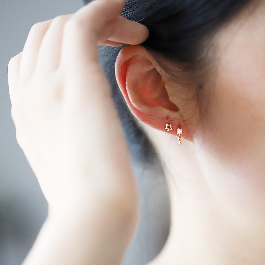- Design: A curated set of five pairs featuring gold twist loops and zircon accents.