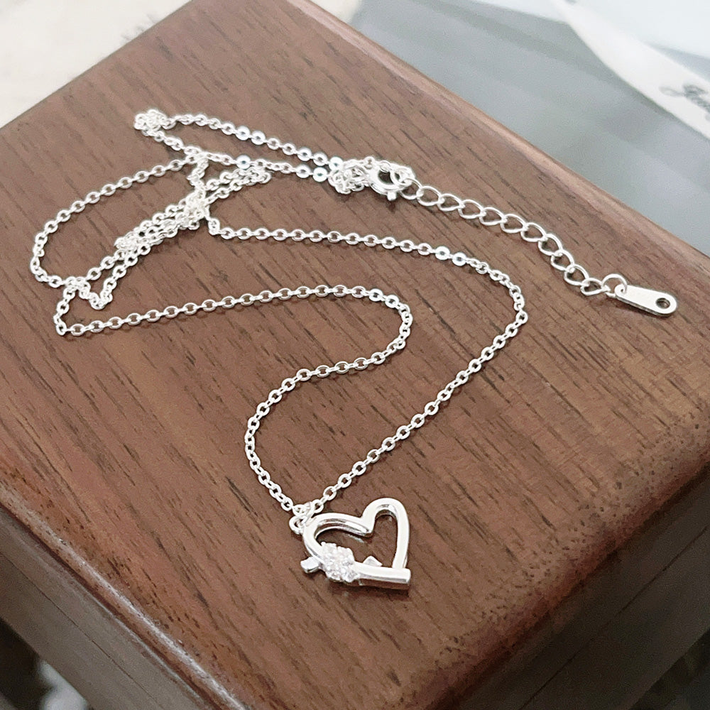 Discover our exquisite wholesale collection of five unique 925 sterling silver necklaces. Each piece features a beautifully crafted hollow-out heart charm, accented with brilliant Cubic Zirconia stones for an added touch of sparkle. Made from high-quality, hypoallergenic 925 sterling silver, these necklaces are perfect for sensitive skin and designed for lasting wear. This set offers a variety of romantic designs, making it an ideal choice for retailers and brands looking to offer their customers timeless and popular jewelry styles. The 40+5cm adjustable chain ensures a perfect fit for everyone.