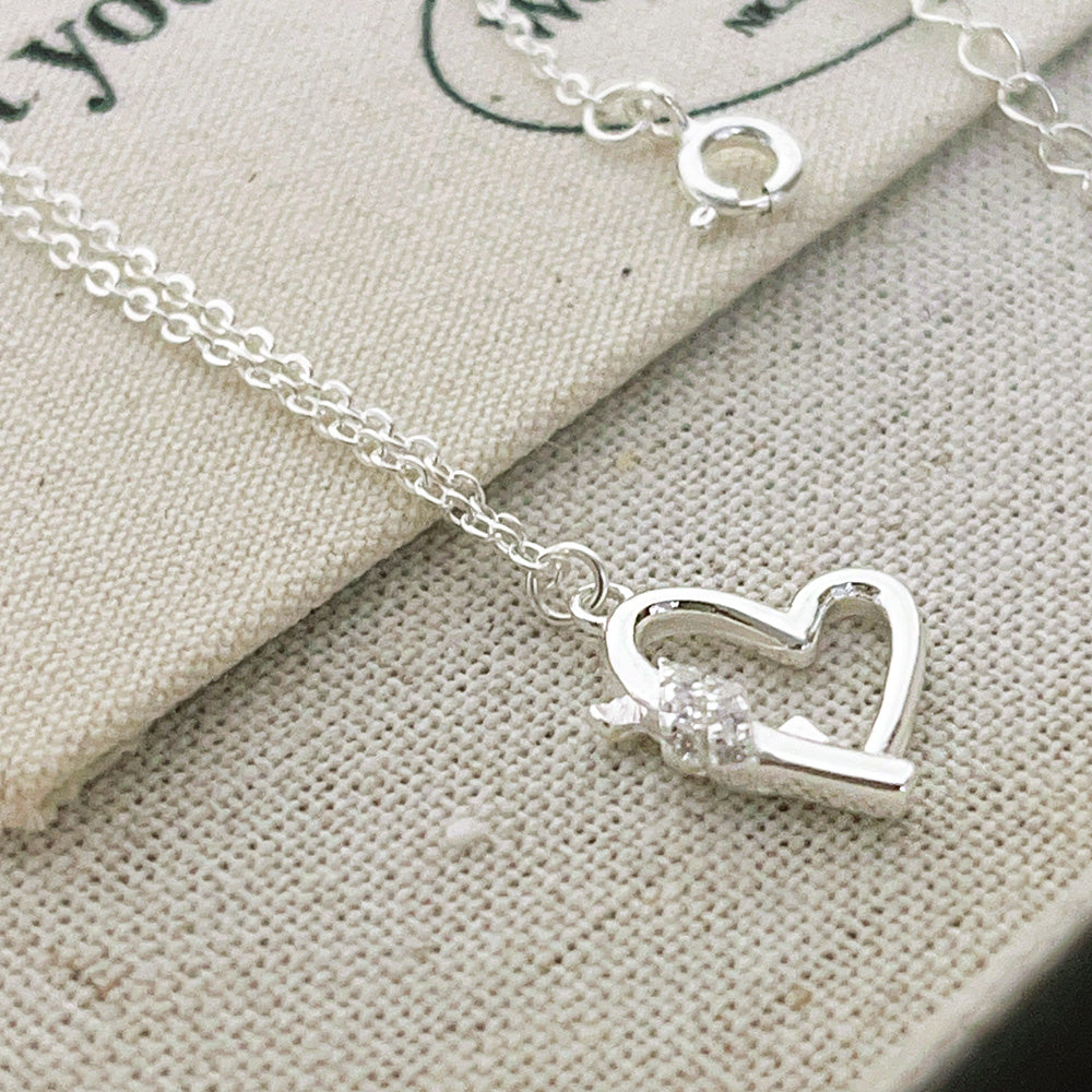 Elegant sterling silver heart pendant necklace with a single sparkling CZ stone.