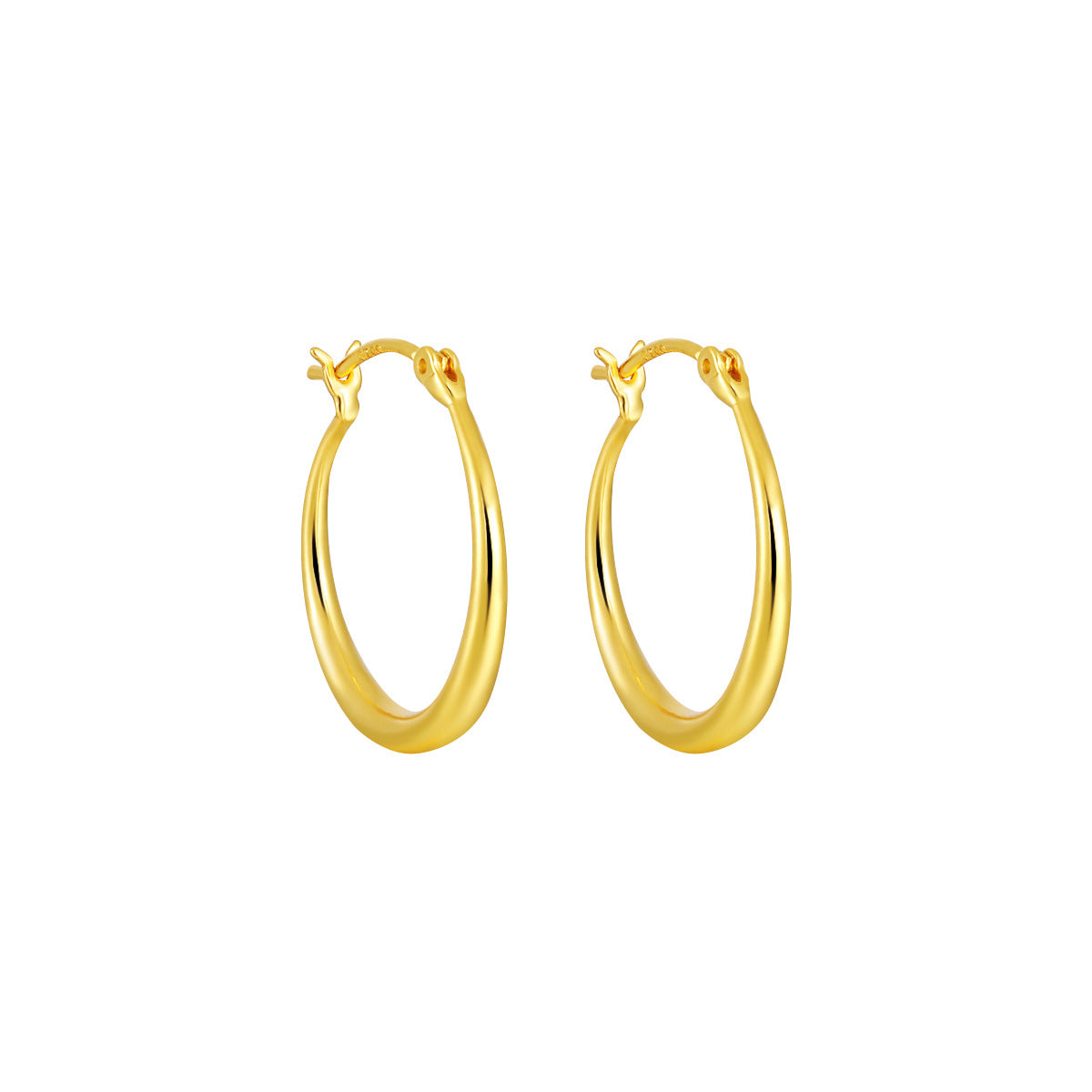 A pair of classic 20mm hoop earrings with a shiny 18K gold plated finish.
