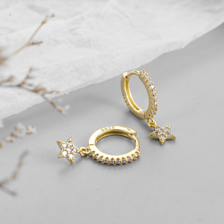 Gold Plated Brass Huggie Hoops with CZ Star Charm