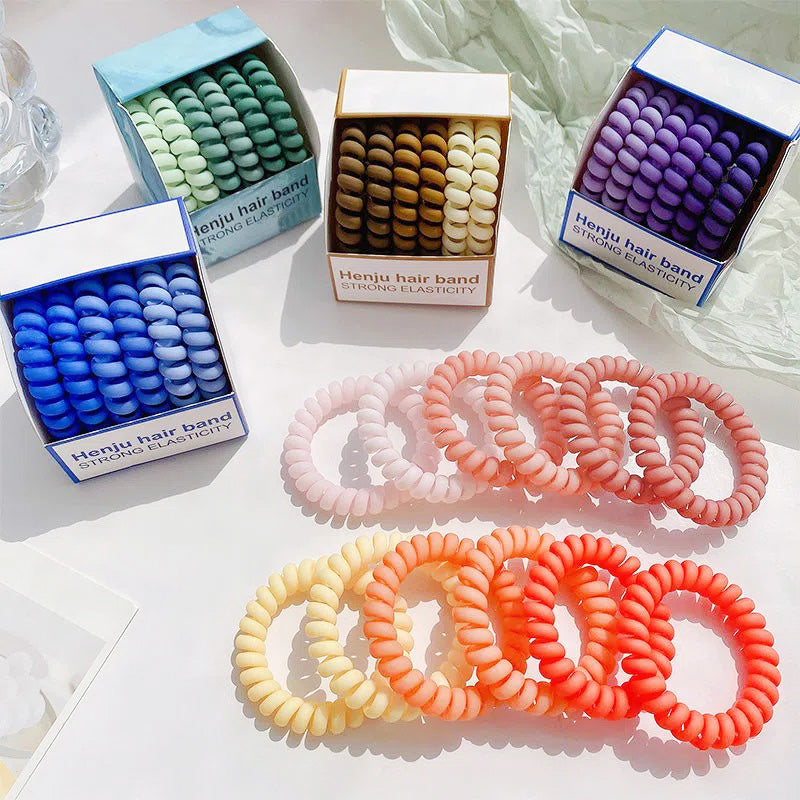 Discover our wholesale telephone cord hair ties, perfect for women and girls. Each pack contains 6 durable, metal-reinforced spiral ties, and this offer includes 5 sets, providing exceptional value. Available in a variety of vibrant color series, these hair ties offer a strong, crease-free hold for all hair types. Ideal for retailers and bulk buyers seeking stylish and practical hair accessories.