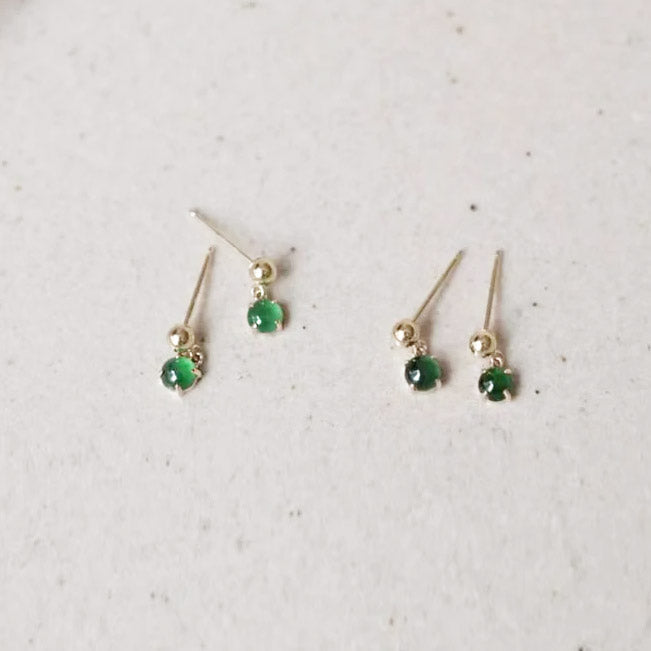 Clean product shot of the tiny jade earrings on a white background.