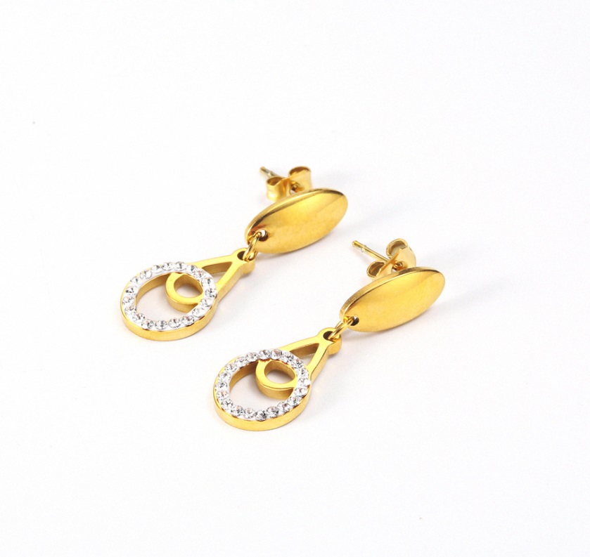 Elegant Gold-Plated Stainless Steel Set with White Crystals