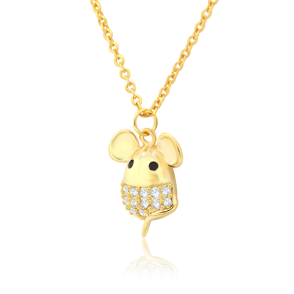 Wholesale Cute Mouse Gold-Plated Necklace with Cubic Zirconia - Custom Jewelry Manufacturing