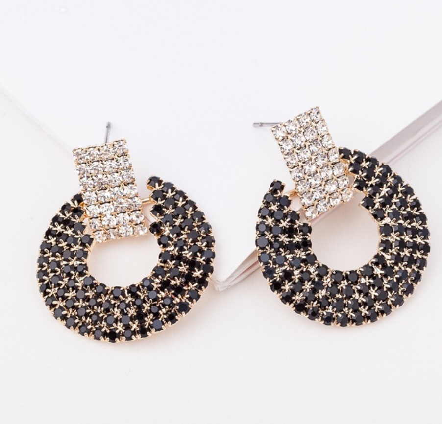 Wholesale Black and Clear Crystal Round Statement Earrings