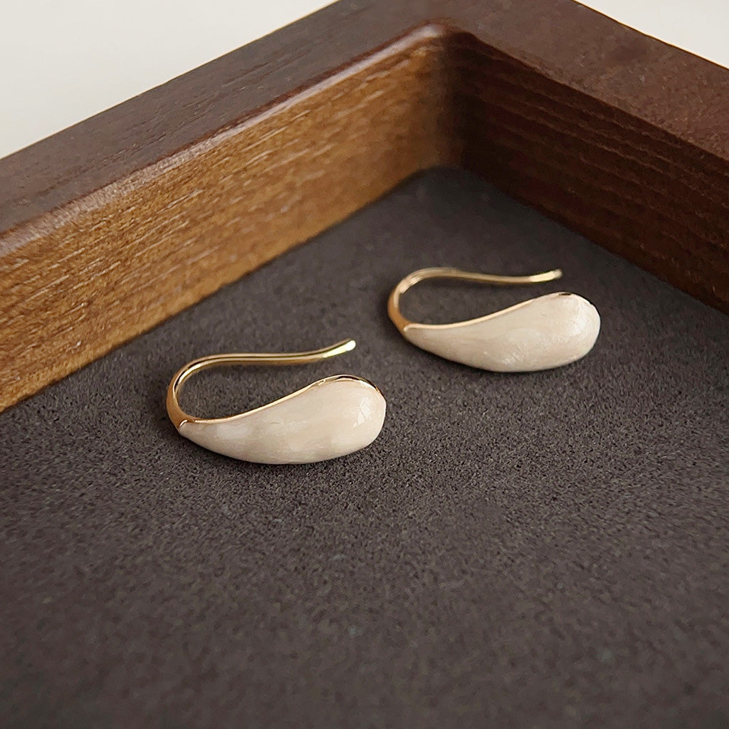 - Product Name: Wholesale Gold-Plated White Cream Enamel Waterdrop French Hook Earrings