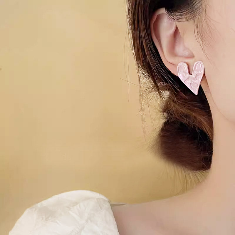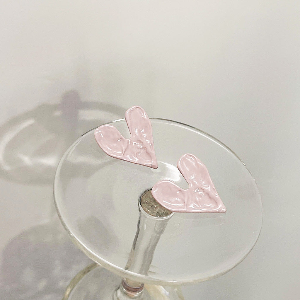- Product Name: Wholesale Pink Enamel Hammered Heart Shape Stud Earrings