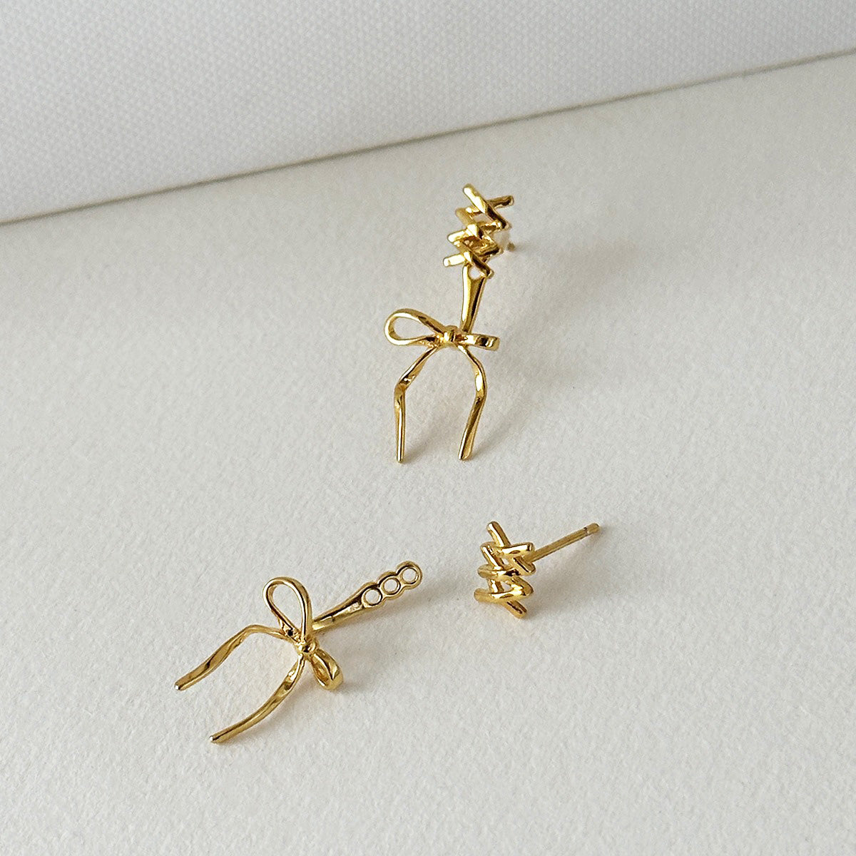 Close-up of the gold-plated 925 sterling silver bowknot stud earrings.