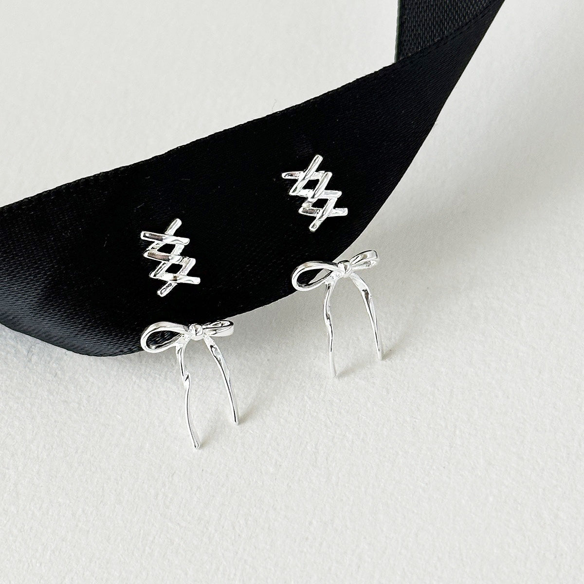 Detailed product shot of the 925 sterling silver bowknot stud earrings.