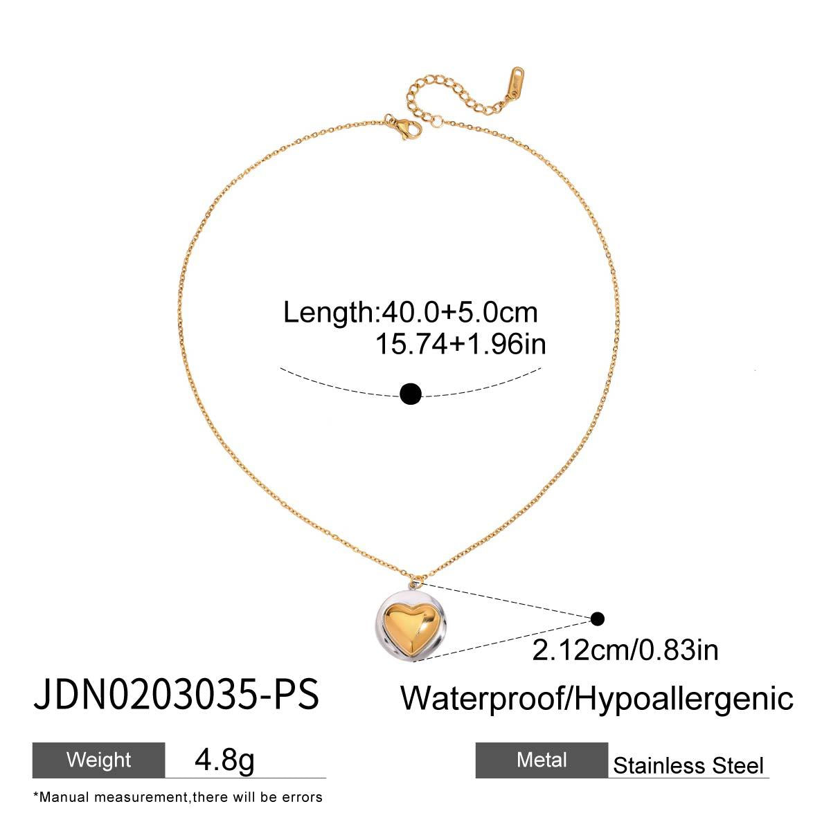 The necklace showcases a polished gold and silver heart pendant that highlights its two-tone appeal. With a fine stainless steel collarbone chain, this dainty heart pendant necklace is ideal for layering with other minimalist jewelry. Whether as a dainty gold heart necklace or a standout stainless steel heart pendant necklace, the style suits every jewelry collection.