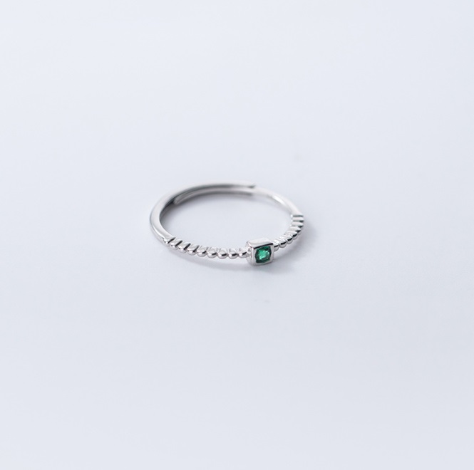 The 925 sterling silver emerald ring shown in a silver finish with anti-tarnish e-coating.