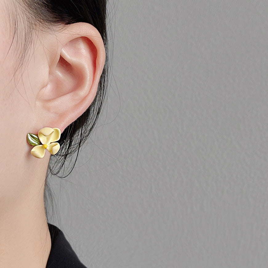 - Product Name: Wholesale yellow enamel 3D Cape Jasmine gardenia flower stud earrings