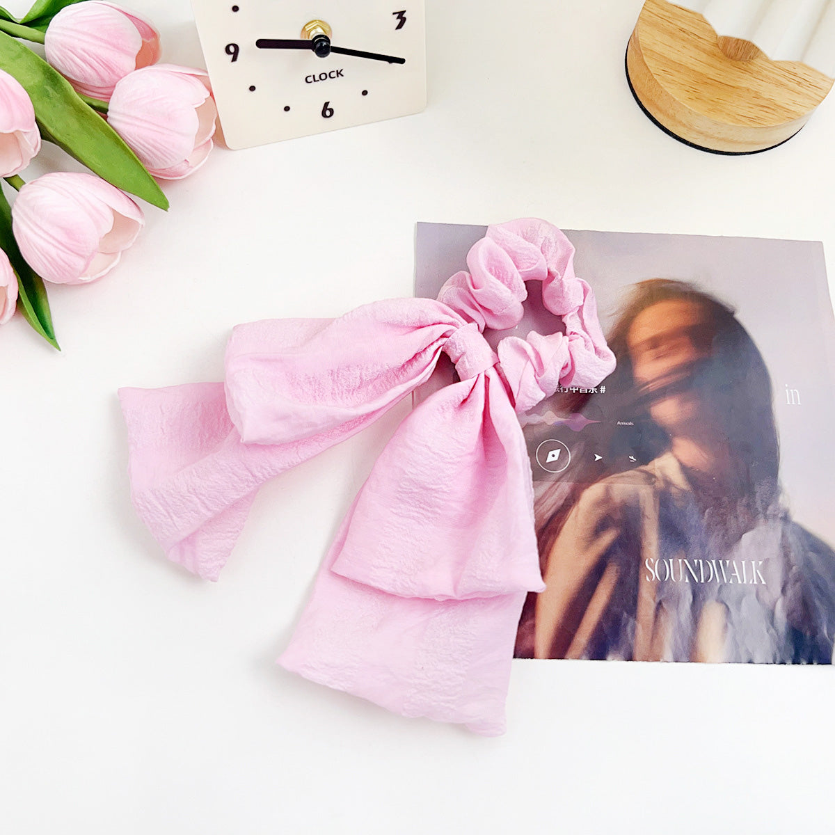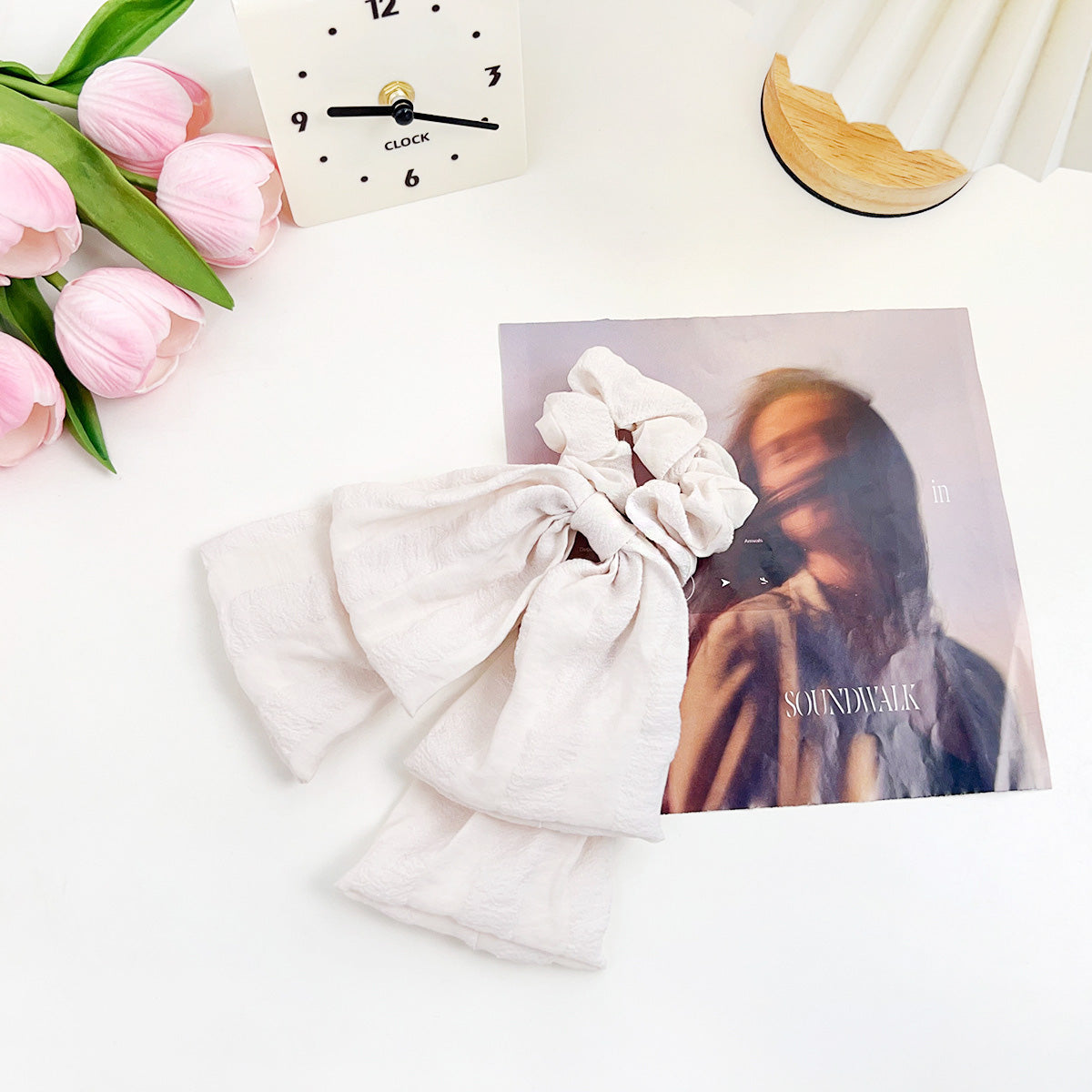 - Style: Elastic scrunchie with a decorative ribbon knot