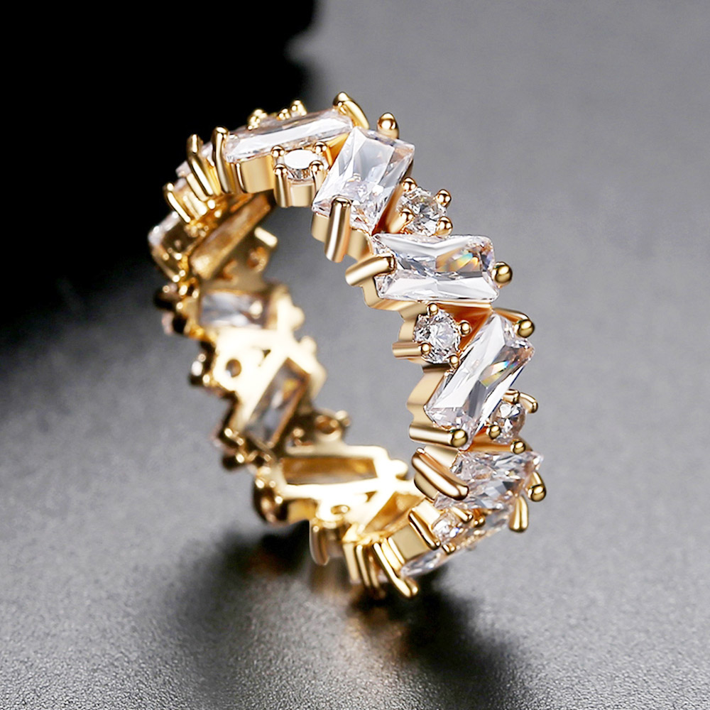 Crafted from a durable brass core, this ring is available in two luxurious finishes: a warm 14k yellow gold plating or a sleek, bright rhodium plating. The high-quality cubic zirconia stones are expertly set to ensure maximum brilliance and longevity. This commitment to quality means you can enjoy your statement ring for years to come, day or night.