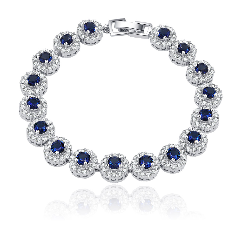 Sapphire elegance bracelet in silver with blue and clear gemstones.