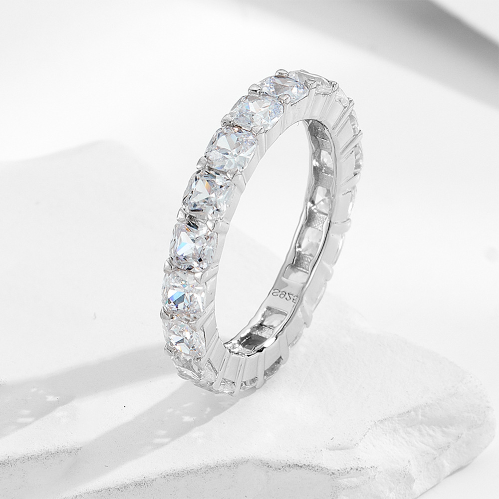 Crafted in premium 925 silver, this radiant cut engagement ring delivers clean sparkle, modern lines, and a luxurious feel suitable for proposal shoppers and bridal jewelry collections.