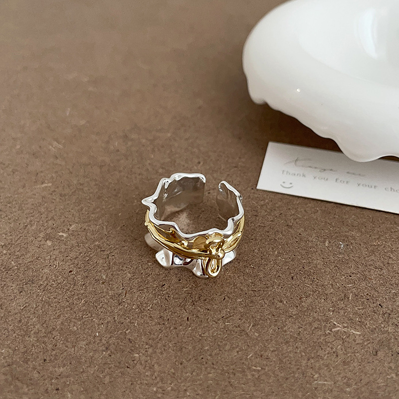 Design: Two tone minimalist bow tie ring with adjustable open band.